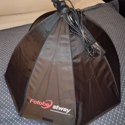 - Ett brett urval av ljusformare, inklusive paraplyer, reflektorer och diffusorer