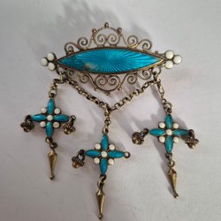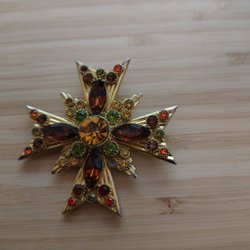 Broscher förknippas ofta med ädelstenar, guld och silver. Trenderna genom årtiondena har dock även lämnat plats för retrobroscher och färgglada plastvarianter. Broscher finns i ett närmast oändligt antal olika varianter, både trendiga och klassiska. I Traderas utbud av begagnade broscher kan man hitta broscher silver och broscher guld. I allra bästa fall finns en Chanel brosch eller två ute för auktion – en dröm för den som gillar att klä sig klassiskt stilrent. Den som vågar ta ut svängarna har ofta ännu mer att hämta. Broscher, smycken och kläder är ett intresse som delas av många. Individuella preferenser styr garderobens innehåll och dessa förändras över tid. Titta igenom utbudet av aktiva annonser så kan du upptäcka broscher som gjort sitt i en persons smyckesgarderob, men som blir huvudnumret i din. Hos Tradera har du möjlighet att hitta begagnade broscher i alla prisklasser, från slutsålda varianter från budgetkedjorna till diamantprydda varianter från välkända juvelerare.