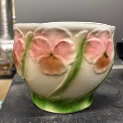 • Keramisk blomkruka med handmålade blommor