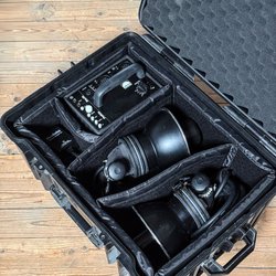 - Ett brett urval av ljusformare, inklusive paraplyer, reflektorer och diffusorer
