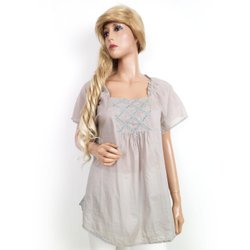 TUSNELDA BLOCH Tunikablus 40 Beige Bomull Kort ärm Fyrkantig urringning
