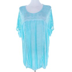 CISO Tunikablus 48 Blå Viskos 100% Kort ärm Spetsbroderi Rund urringning