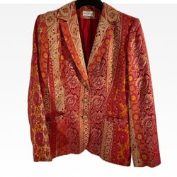 MUREK brokadblazer 38 – röd/guld paisley, guldkulknappar, Etro/Westwood vibbar