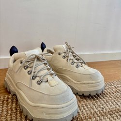 Eytys arbetar enligt en tydlig linje som innebär att alla modeller är unisex och ska kunna bäras av vem som helst. På Tradera kan man hitta ett stort urval från framför allt Eytys sneaker-kollektioner där platå och glänsande yta är återkommande detaljer som skapar en speciell karaktär hos skorna. Andra modeller går i neutrala färger och nyanser som passar snyggt till de flesta kläder och accessoarer – inte minst Eytys egna jeansjackor i denimtyg.