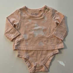 Jessica Simpson, ljusrosa body med långärmad tunn tröja storlek 0/3 månader