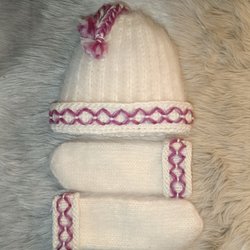 Stickad mössa och lovika vantar