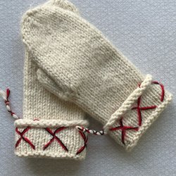 Handstickade lovikka vantar