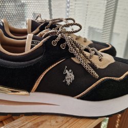 Svarta skinn-sneakers, U.S. Polo Assn. EUR 38 (små i strlk)