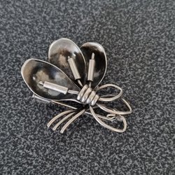 Broscher förknippas ofta med ädelstenar, guld och silver. Trenderna genom årtiondena har dock även lämnat plats för retrobroscher och färgglada plastvarianter. Broscher finns i ett närmast oändligt antal olika varianter, både trendiga och klassiska. I Traderas utbud av begagnade broscher kan man hitta broscher silver och broscher guld. I allra bästa fall finns en Chanel brosch eller två ute för auktion – en dröm för den som gillar att klä sig klassiskt stilrent. Den som vågar ta ut svängarna har ofta ännu mer att hämta. Broscher, smycken och kläder är ett intresse som delas av många. Individuella preferenser styr garderobens innehåll och dessa förändras över tid. Titta igenom utbudet av aktiva annonser så kan du upptäcka broscher som gjort sitt i en persons smyckesgarderob, men som blir huvudnumret i din. Hos Tradera har du möjlighet att hitta begagnade broscher i alla prisklasser, från slutsålda varianter från budgetkedjorna till diamantprydda varianter från välkända juvelerare.