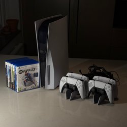 PLAYSTATION 5 Digital Edition 1 TB, kvitto, 2st. handkontroller med Gioteck duo