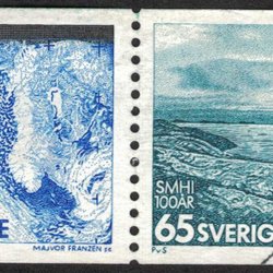 Facit #824SX2 Väderlekstj. 100 år, 65 öre blå/svart/blågrön