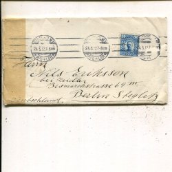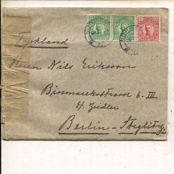 GV 10+2x5öre på brev till Tyskland, Norrtälje 2.11.1917,Berlin-censur