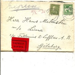 GV 40ö oliv+Lejon 5ö grön på expressbrev, Stockholm 18.2.1936 till Göteborg