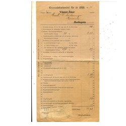 Skattsedel fr Väster-Åker, kvitto med oval Postkontoret Uppsala Skatteavd. 1928