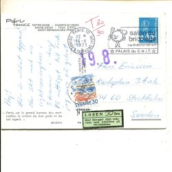 30ö som lösen på brevkort fr Frankrike t Stockholm 8.1971