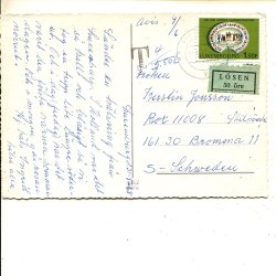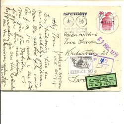 60öre som lösen på brevkort från Tyskland till Lidingö 1 26.3.1973