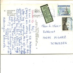 35öre som lösen på brevkort fråm Belgien till Ingarö 16.7.1968