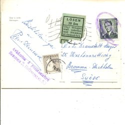 Ishockey 2x15ö som lösen på brevkort fr Belgien t Sundbyberg 29.8.1953