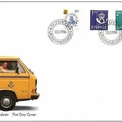 Sverige: FDC 1986. Postens emblem 1.70 kr, 2.80 kr. Postverket 350 år. Bra skick