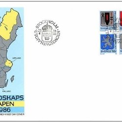 Sverige: FDC 1986. Rabattmärken VIII. Svenska landskapsvapen. Se bild.