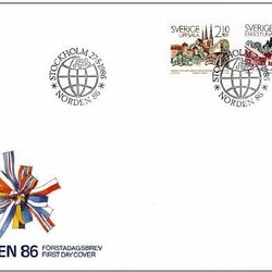 Sverige: FDC 1986. Norden VII. Vänorter. Bra skick.