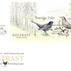 Sverige: FDC 2019. Koltrast. Se bild.