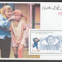 BL22 Astrid Lindgren 100 år, Cyls 2 + kn 045412, postfrisk