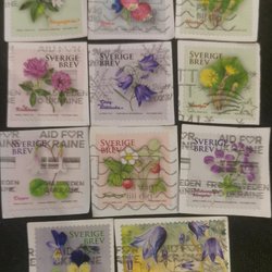 122st+10xtra valörlösa frimärken stämplade 2024-2025 nyare Sverige brev klipp