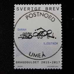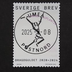 Frimärken Sverige BRAGDGULD från 2025 SARA SJÖSTRÖM stpl UMEÅ 2025-09-04 LYX