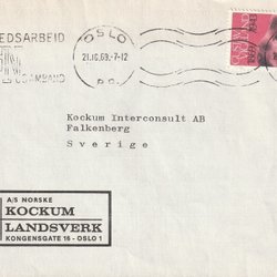 F621 Norge. Brev stpl Oslo 21.10.69 till Falkenberg, Sverige.