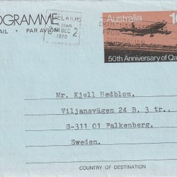 Australien, Aerogramme 10 C, stpl. Adelaide 14 december 1970 t.Falkenberg