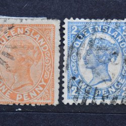 Gamla frimärken stämplade QUEENSLAND