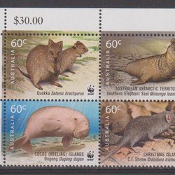 AUSTRALIAN ANTARCTIC TERRITORY:Postfriskt vackert 5 strip.med olika DJUR