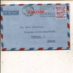 Australia 7d aerogramme to Sweden, Adelaide 1 Nov 1951