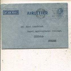 Australia 7d aerogramme to Sweden, Adelaide 16 Feb 1950
