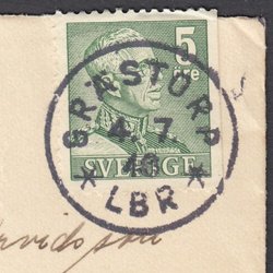 F281 Gustaf V stämplad Skellefteå 8/3 1943