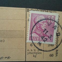 Klipp stämplad Stensbo 21/4 42 Ludvika Kommun Halvsvår stämpel Postal 75 kr