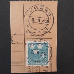 Klipp stämplad Vråka 3/6 42 Praktstämplad Västerviks Kommun 58 stpl