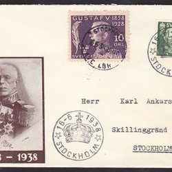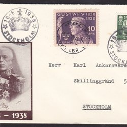 Sverige - 1928 - Brev - Gustav V. 70 år