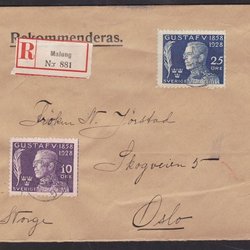 Sverige - Brev - Gustav V. 70 år - stpl. MALUNG 22 12 1928