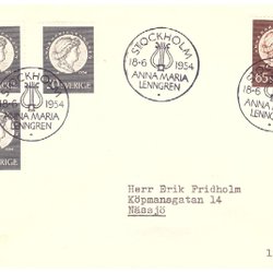 Sverige: FDC 1954. Anna Maria Lenngren. Se bild.