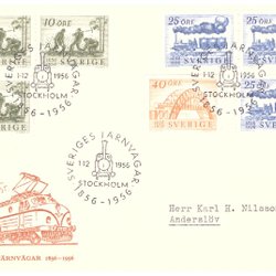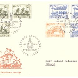 Sverige: FDC 1956. Sveriges Järnvägar 100 år. Se bild.