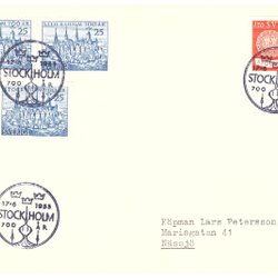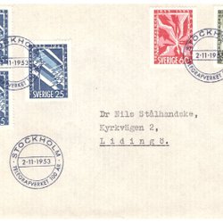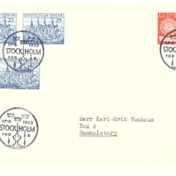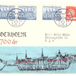Sverige: FDC 1953 Vinjett 4. Stockholm 700 år. Se bild.