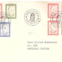 Sverige: FDC 1952. Gustaf VI Adolf 70 år. Bra skick.