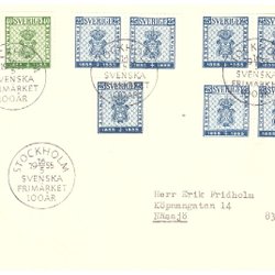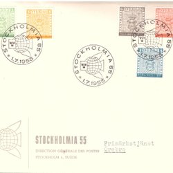 Sverige: FDC 1955. Stockholmia 55, Standar vinjett. Se bild.