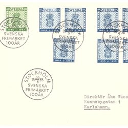 Sverige: FDC 1955. Svenska frimärket 100år. Se bild.