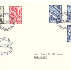 Sverige: FDC 1953. Svenska Telegrafverket 100 år. Se bild.
