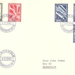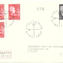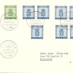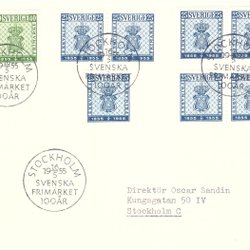 Sverige: FDC stämplat med fel märken 1955 . Stockholmia 55. Bra skick.
