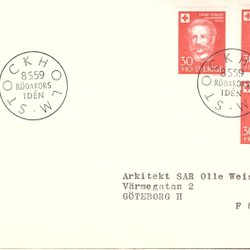 Sverige: FDC 1959. Röda Korset 100 år. Bra skick.