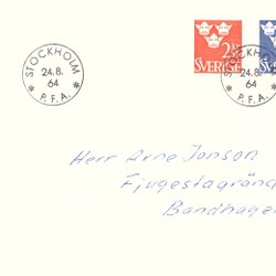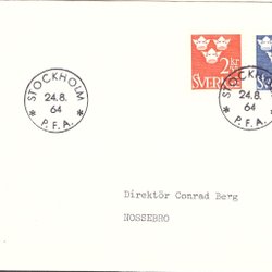 Sverige: FDC 1964. Tre Kronor 2.55 kr, 3 kr. Bra skick.